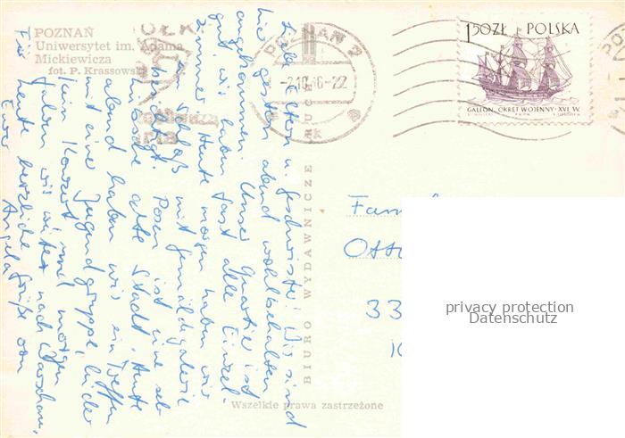74044063 old postcard POZNAN Posen PL Uniwersystet im Adama Mickiewicza Fliegeraufnahme postalisch gelaufen Erhaltung siehe scans [WerneD78] KatCode: 11410