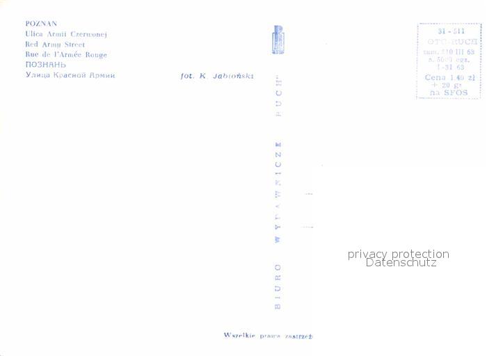 Poznan Posen Red Army Street postalisch nicht gelaufen Erhaltung siehe scans [WerneD78]