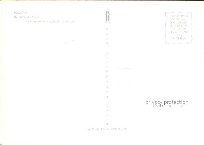 Poznan Posen Restaurant Adria postalisch nicht gelaufen Erhaltung siehe scans [LiesaD40]