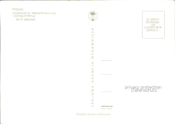 Poznan Posen Uniwersyet im Adama Mickiewicza postalisch nicht gelaufen Erhaltung siehe scans