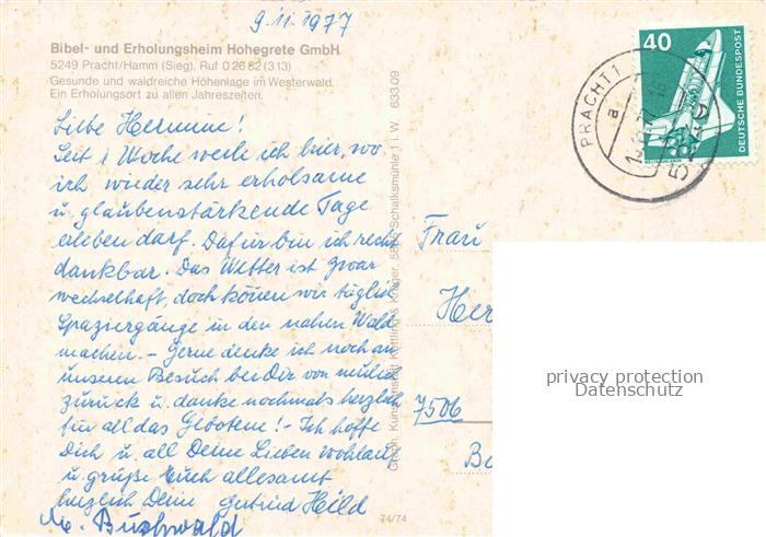 74050370 alte Postkarte Pracht Hamm Sieg Altenkirchen Westerwald Bibel und Erholungsheim Hohegrete postalisch gelaufen Erhaltung siehe scans [WerneD78] KatCode: 11110007132091
