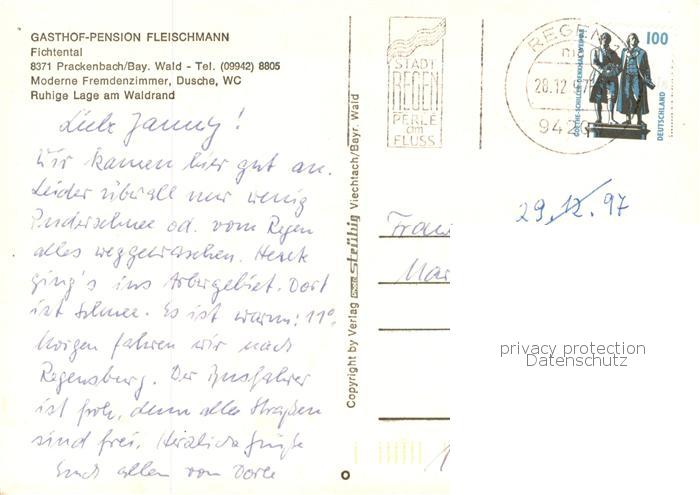 73766067 alte Postkarte Prackenbach Gasthof Pension Fleischmann Wegweiser Winterlandschaft postalisch gelaufen Erhaltung siehe scans [FriedD77] KatCode: 11110009276135
