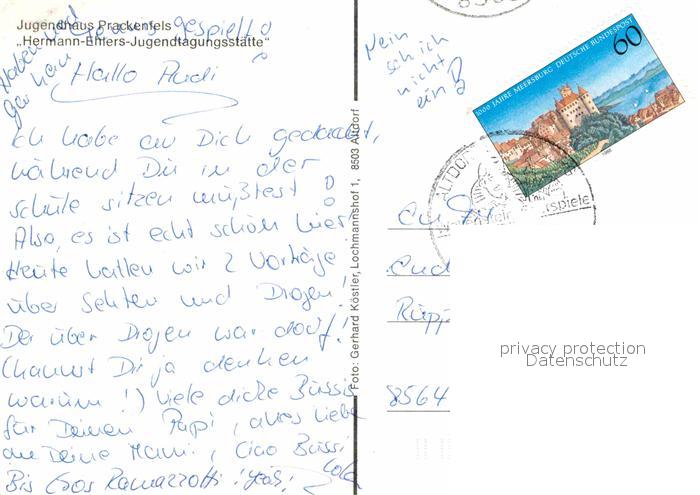 72698971 alte Postkarte Prackenfels Nuernberg Jugendtagungsstaette Jugendhaus postalisch gelaufen Erhaltung siehe scans [KathaD79] KatCode: 11110009574112