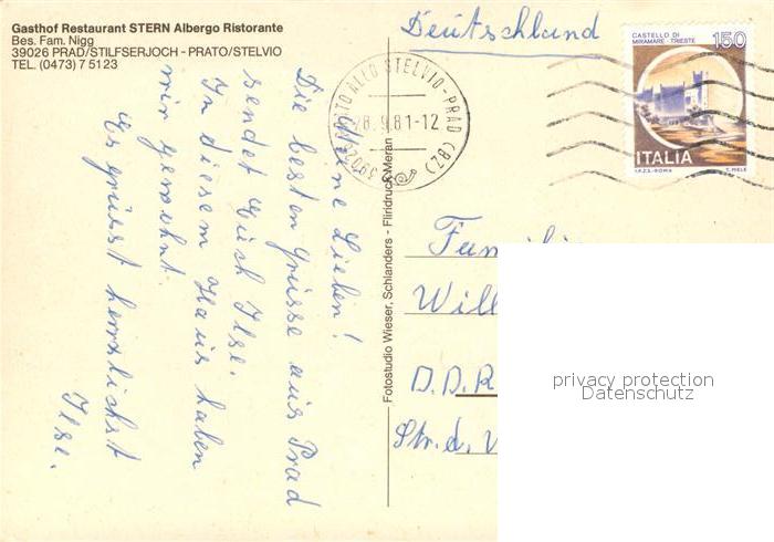 alte Postkarte Prad Stilfserjoch Gasthof Restaurant Stern Panorama postalisch gelaufen Erhaltung siehe scans [WerneD78]