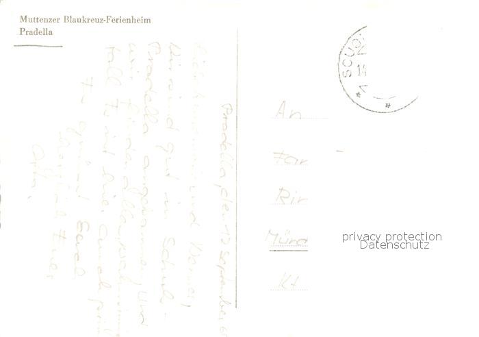13803047 alte Postkarte Pradella Scuol GR Muttenzer Blaukreuz Ferienheim postalisch gelaufen Erhaltung siehe scans [FriedD77] KatCode: 11470100325156