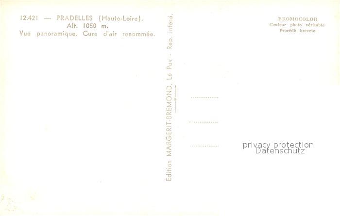 13541385 Pradelles Haute-Loire Vue panoramique cure d air renommée postalisch nicht gelaufen Erhaltung siehe scans [FriedD77] KatCode: 11170043243154