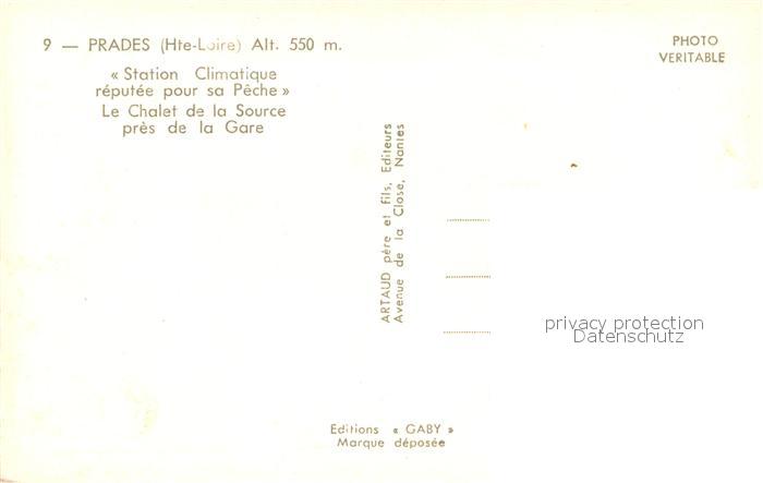 13744510 Prades Haute-Loire Station Climatique Le Chalet de la Source pres de la Gare postalisch nicht gelaufen Erhaltung siehe scans [WerneD78] Wern Katcode 11170043143155