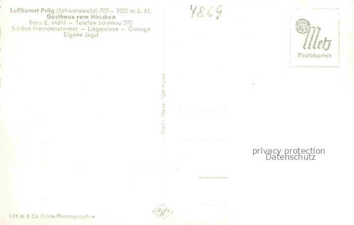74023160 Praeg Todtnau BW Gasthaus zum Hirschen postalisch nicht gelaufen Erhaltung siehe scans [WerneD78] KatCode: 11110008336087