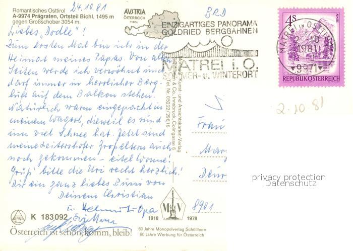 73152528 alte Postkarte Praegraten Grossvenediger Bergdorf gegen Grossschober Venedigergruppe postalisch gelaufen Erhaltung siehe scans [FriedD77] KatCode: 11390333070723