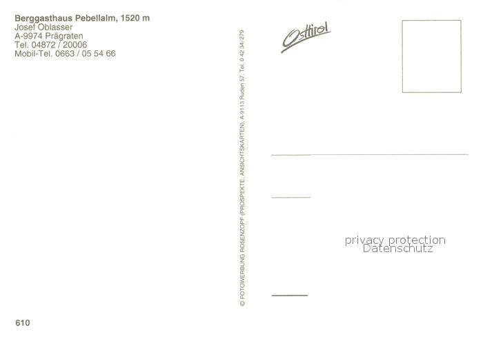 73224243 Praegraten Grossvenediger Berggasthof Pebellalm Jausenstation postalisch nicht gelaufen Erhaltung siehe scans [FriedD77] KatCode: 11390333070723