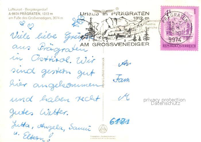 73226141 alte Postkarte Praegraten Grossvenediger Fliegeraufnahme Grossvenediger postalisch gelaufen Erhaltung siehe scans [KathaD81] KatCode: 11390333070723