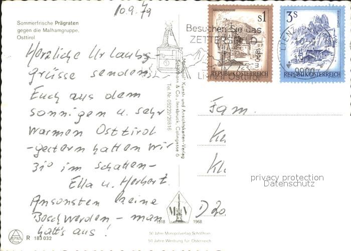 72457489 alte Postkarte Praegraten Grossvenediger Malhamgruppe postalisch gelaufen Erhaltung siehe scans KatCode: 11390333070723