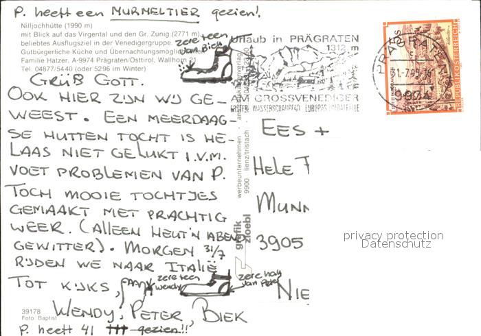 72212224 alte Postkarte Praegraten Grossvenediger Nilljochhuette postalisch gelaufen Erhaltung siehe scans KatCode: 11390333070723