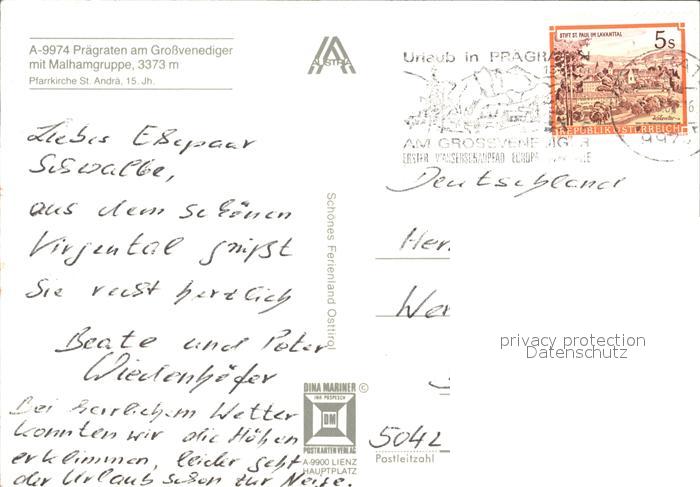 72438132 alte Postkarte Praegraten Grossvenediger postalisch gelaufen Erhaltung siehe scans KatCode: 11390333070723