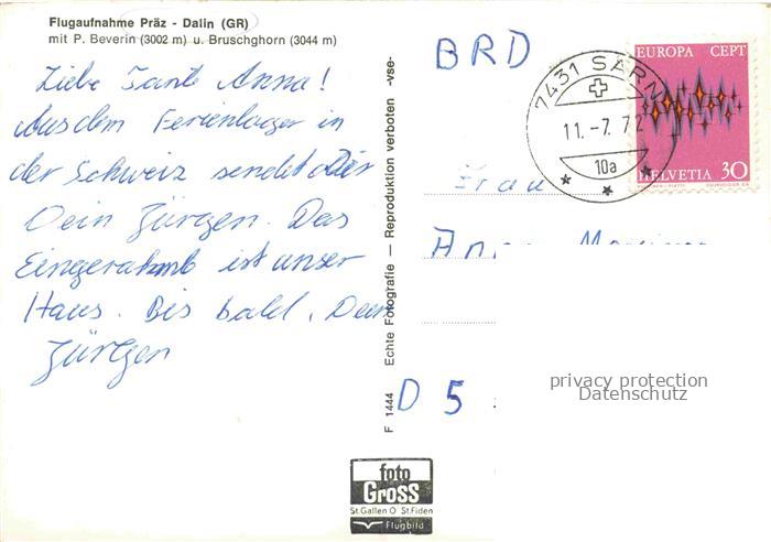 34144992 alte Postkarte Praez-Dalin Heinzenberg Hinterrhein GR Panorama Blick auf Piz Beverin und Bruschghorn postalisch gelaufen Fliegeraufnahme Erhaltung siehe scans [FriedD77] KatCode: 11470100315076