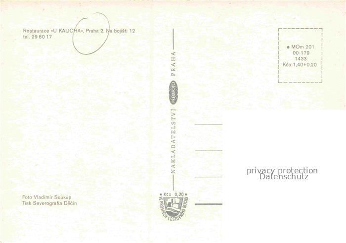 74156580 Prag PRAHA Prahy Prague CZ Restaurant-U-Kalicha Schwejk-Restaurant Gastwirtschaft Kneipe Wandmalerei Innenraum Kronleuchter Na-bojišti postalisch nicht gelaufen Erhaltung siehe scans [Karloger] KatCode: 11520