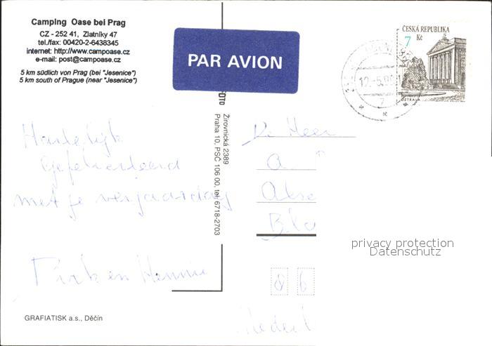 old postcard Prag Prahy Prague Camping Oase Swimming Pool Lagerfeuer postalisch gelaufen Erhaltung siehe scans