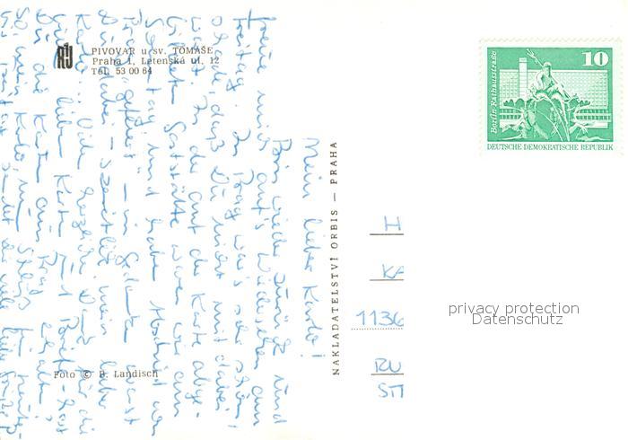 old postcard Prag Prahy Prague Gaststaette Hotel Tomase postalisch gelaufen Erhaltung siehe scans [KathaD81]