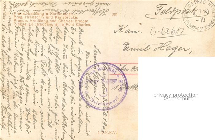 old postcard Prag Prahy Prague Hradschin und Karlsbruecke NZ4 postalisch gelaufen Feldpost Erhaltung siehe scans [WerneD78]