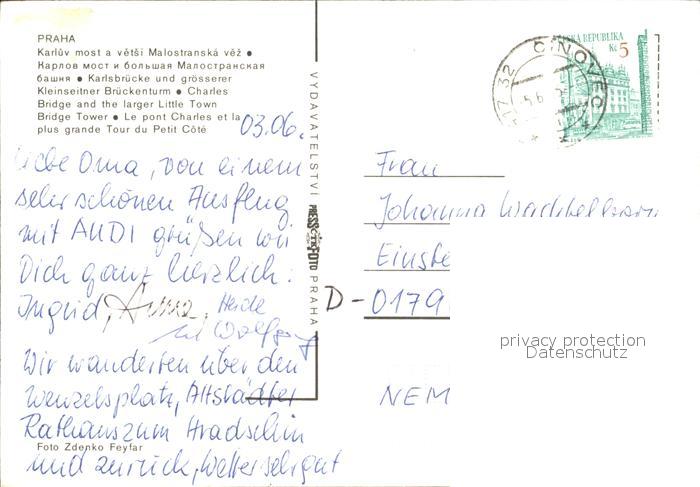 old postcard Prag Prahy Prague Karlsbruecke mit grossem und kleinem Brueckenturm postalisch gelaufen Erhaltung siehe scans