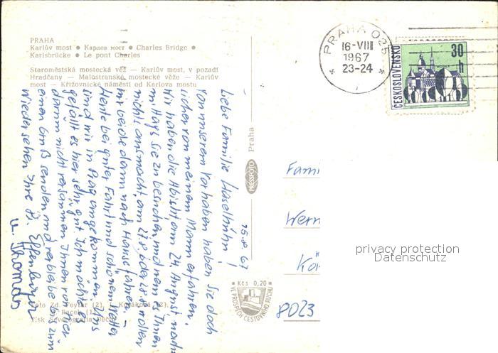 old postcard Prag Prahy Prague Karlsbruecke Stadttor postalisch gelaufen Erhaltung siehe scans