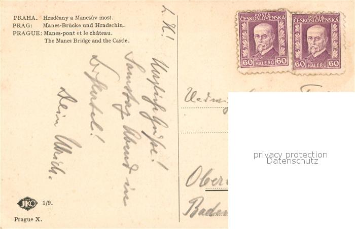 old postcard Prag Prahy Prague Manes Bruecke und Hradschin postalisch gelaufen Erhaltung siehe scans [WerneD78]