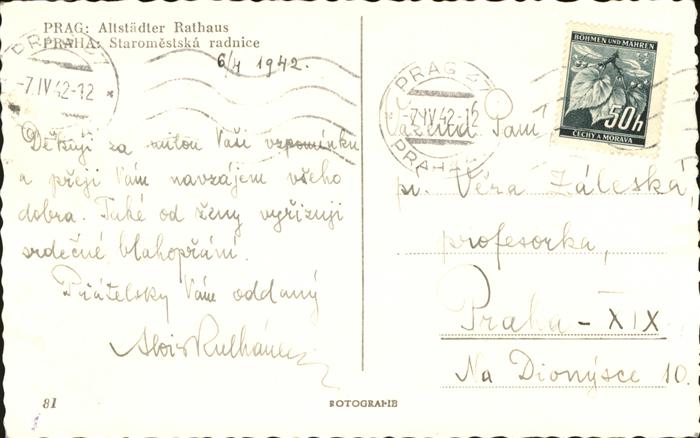 old postcard Prag Prahy Prague Rathaus postalisch gelaufen