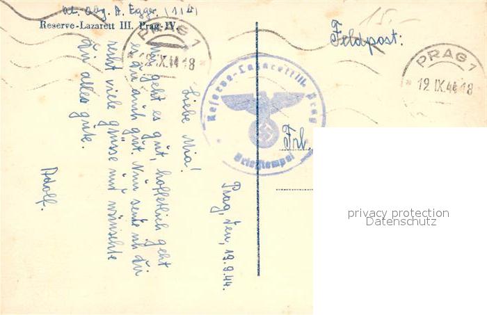 42973793 Prag Prahy Prague Reserve Lazarett III NZ4 postalisch gelaufen Feldpost Erhaltung siehe scans [KathaD81] Feldpost old postcard Kath Katcode 11520