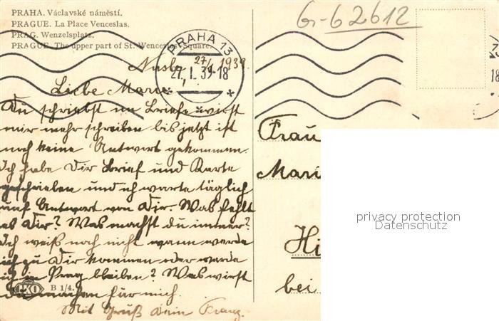old postcard Prag Prahy Prague Wenzelsplatz postalisch gelaufen Erhaltung siehe scans [WerneD78]