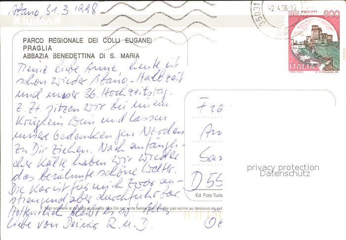 old postcard Praglia Teolo Abbazia Benedettina di Santa Maria Abtei Kloster postalisch gelaufen Erhaltung siehe scans