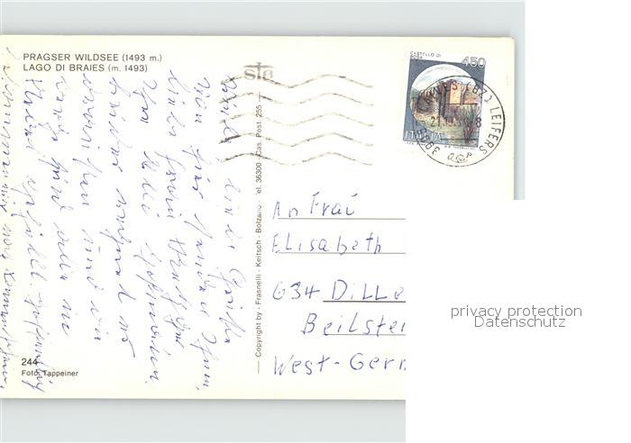 old postcard Pragser Wildsee postalisch gelaufen Erhaltung siehe scans