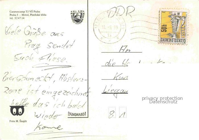 74020680 old postcard PRAHA Prag Prahy Prague Caravancamp TJ VS Praha Restaurant postalisch gelaufen Erhaltung siehe scans [FriedD77] KatCode: 11520