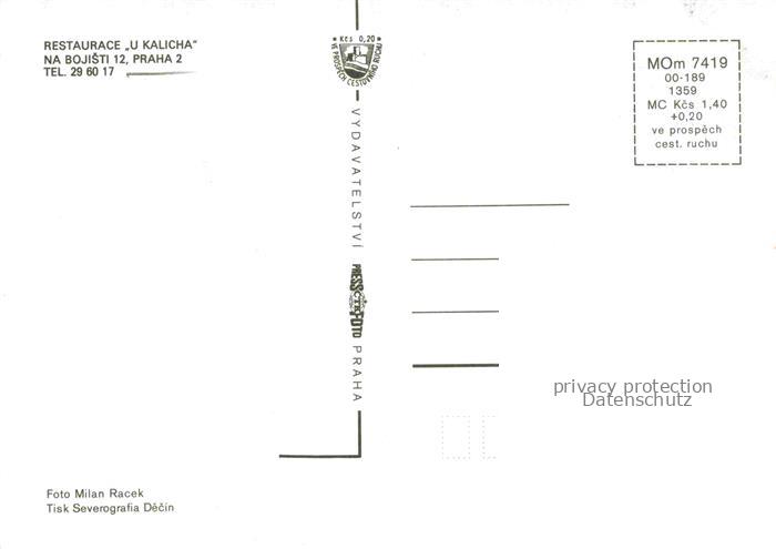 74110860 PRAHA Prag Prahy Prague Restaurace U Kalicha Details postalisch nicht gelaufen Erhaltung siehe scans [WerneD78] KatCode: 11520