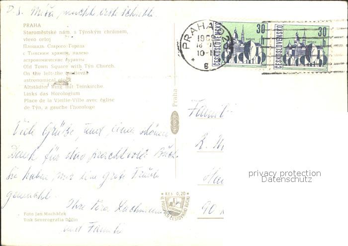 old postcard Praha Prahy Prague Altstadt mit Teinkirche Horologium postalisch gelaufen Erhaltung siehe scans