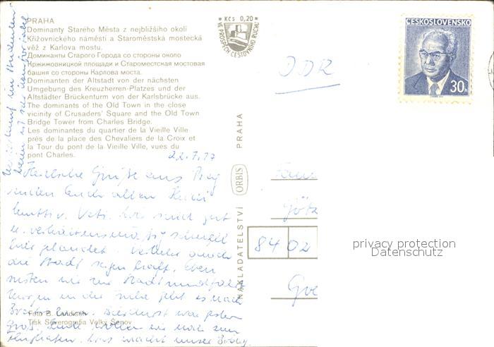 old postcard Praha Prahy Prague Altstadt von Karlsbruecke aus postalisch gelaufen Erhaltung siehe scans