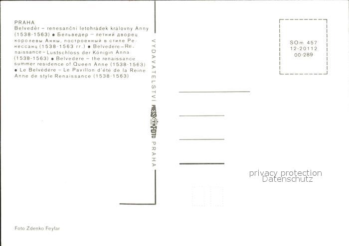 Praha Prahy Prague Belveder postalisch nicht gelaufen Erhaltung siehe scans