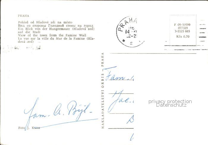 old postcard Praha Prahy Prague Blick von Hungermauer zur Stadt postalisch gelaufen Erhaltung siehe scans