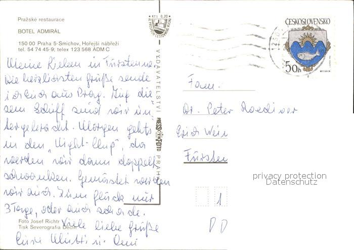 old postcard Praha Prahy Prague Botel Admiral Schiffshotel postalisch gelaufen Erhaltung siehe scans
