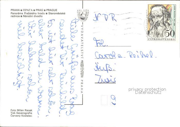 old postcard Praha Prahy Prague Burg Moldaubruecke Narodni Divadlo postalisch gelaufen Erhaltung siehe scans