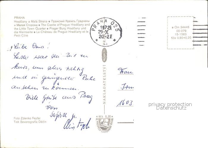 old postcard Praha Prahy Prague Burg und die Kleinseite postalisch gelaufen Erhaltung siehe scans [LiesaD40]