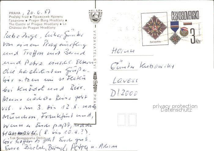 old postcard Praha Prahy Prague Chateau Prague Hradcany postalisch gelaufen Erhaltung siehe scans