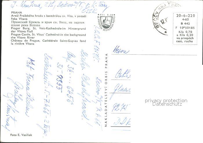 old postcard Praha Prahy Prague Fliegeraufnahme Burg Kathedrale und Vitava postalisch gelaufen Erhaltung siehe scans