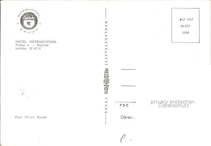 Praha Prahy Prague Hotel International postalisch nicht gelaufen