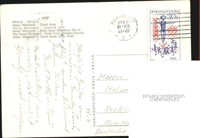 old postcard Praha Prahy Prague Hotel Metropol postalisch gelaufen Erhaltung siehe scans