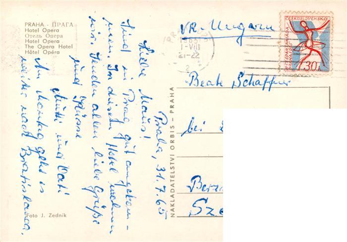 73872701 Praha Prahy Prague Hotel Opera postalisch gelaufen Erhaltung siehe scans [FriedD77] old postcard Frie Katcode 11520