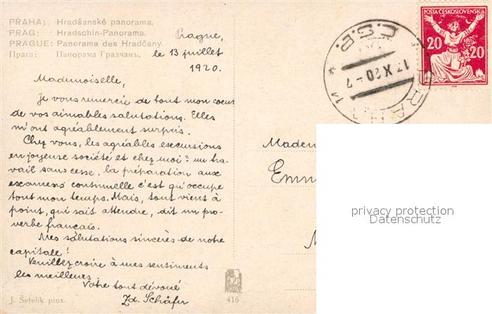 old postcard Praha Prahy Prague Hradcanske panorama postalisch gelaufen Erhaltung siehe scans [WerneD78]