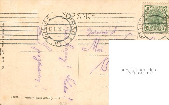 old postcard Praha Prahy Prague Hradcany postalisch gelaufen Erhaltung siehe scans [WerneD78]