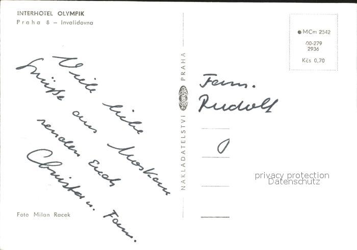 Praha Prahy Prague Interhotel Olympik postalisch nicht gelaufen Erhaltung siehe scans