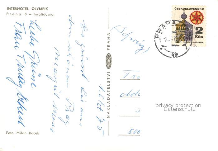 13316896 old postcard Praha Prahy Prague Interhotel Olympik Tagungsraum Foyer Bar postalisch gelaufen Erhaltung siehe scans [WerneD78] KatCode: 11520