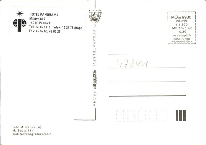 Praha Prahy Prague Interhotel Panorama Praha postalisch nicht gelaufen Erhaltung siehe scans